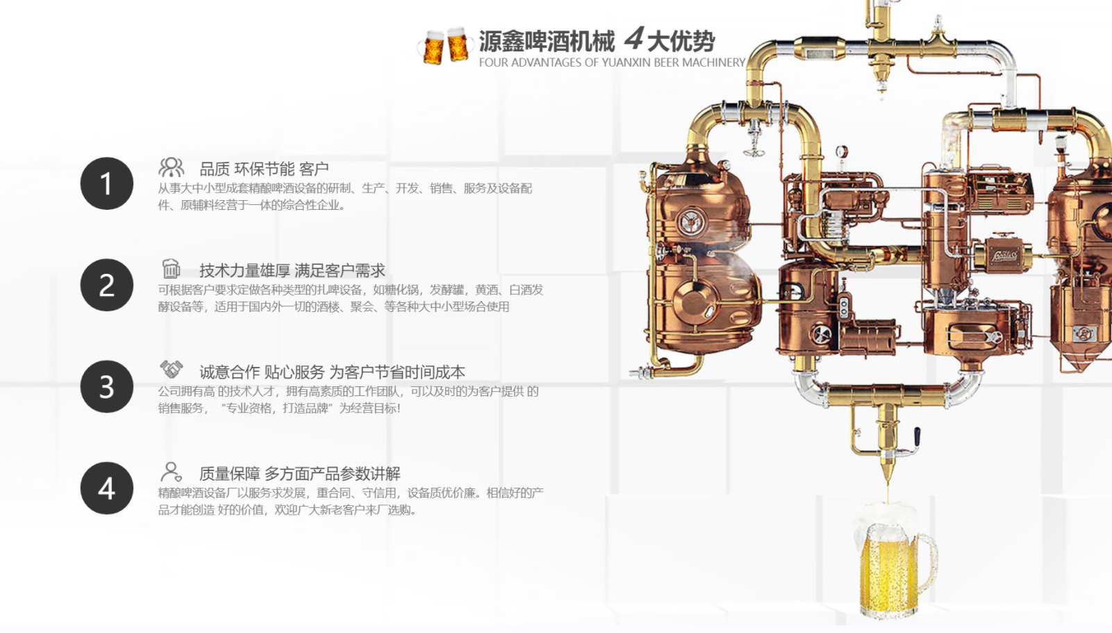 為了追求啤酒獨(dú)特個(gè)性和地區(qū)特點(diǎn)的釀酒理念,從而促進(jìn)餐廳的快速發(fā)展,因此我們使用自...